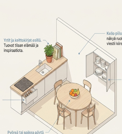Keittiö ja kylpyhuone ovat fengshuissa kodin kaksi vaikutusvaltaisinta tilaa. Ne ohjaavat arjen perusvoimia: ravintoa, puhdistautumista, terveyttä ja elinvoimaa. Kun näiden tilojen energia virtaa tasapainoisesti, koko koti alkaa tukea hyvinvointia ja runsautta.